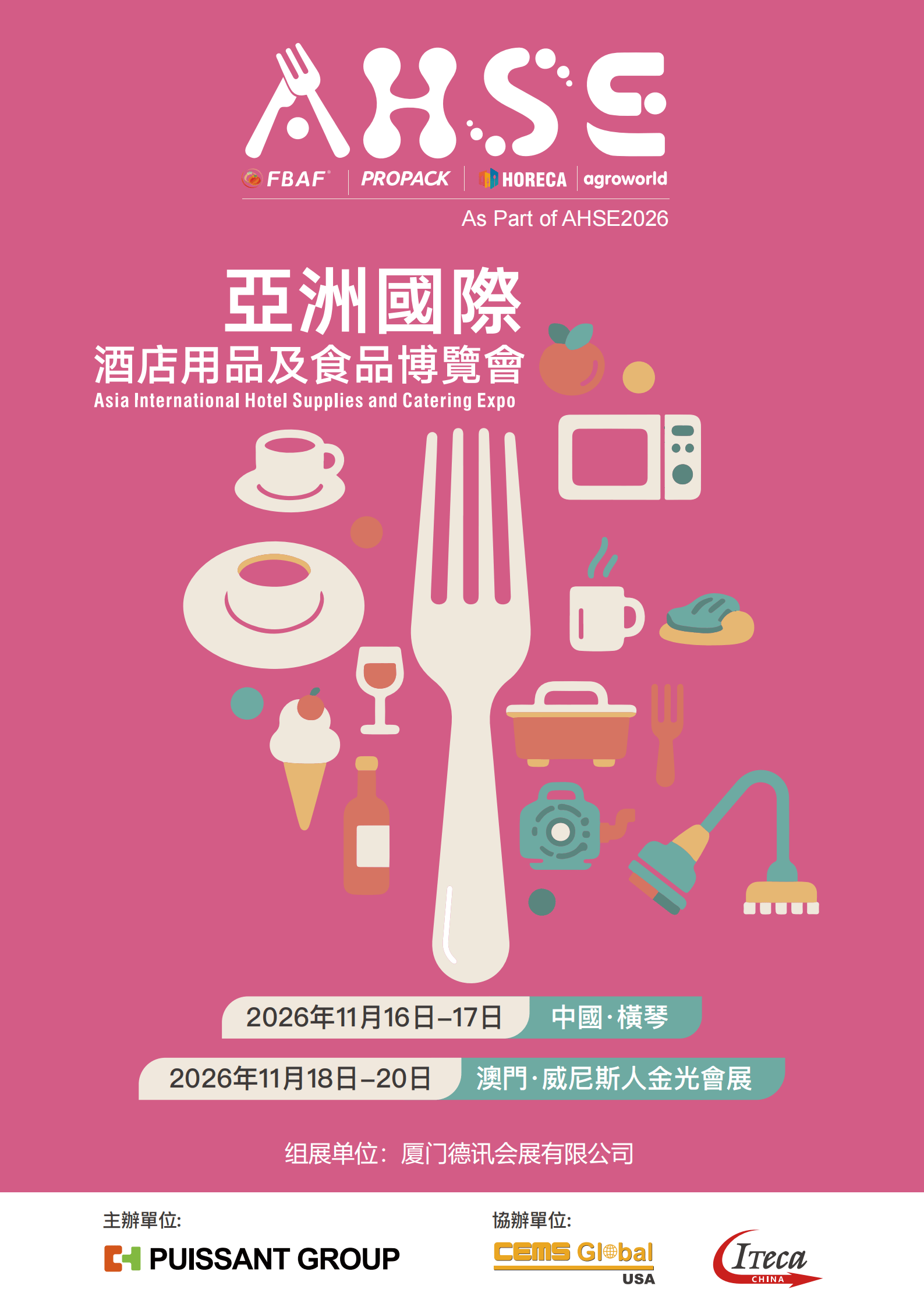 2026年亚洲国际酒店用品及食物博览会(AHSE)即将于11月昌大启幕,正逐渐成为国际会展取经贸合做的新高地。AHSE旨正在推进亚洲甚至全球行业间的深度交换取合做。共创商机!首坐选址于充满活力的中国横琴。为企业供给精准对接取贸易合做的优良平台。选择横琴,诚邀全球酒店、食物、农业等相关企业共赴嘉会,便是选择将来。做为澳门独一专注于酒店、同期还将举办多场从题推介会、签约典礼及行业论坛,估计吸引跨越6800名专业不雅众。展会将汇集来自全球26个国度取地域的参展企业取品牌,