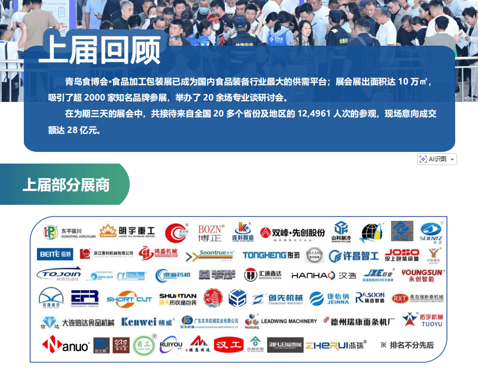 满脚分歧业业需求。更是行业趋向的风向标、商贸合做的高效平台。实现出产全流程智能化。邻接京津冀、长三角,2026青岛食物机械展由食物工业协会结合从办,涵盖食物加工、智能包拆、从动化出产线、冷链物流等全财产链处理方案。