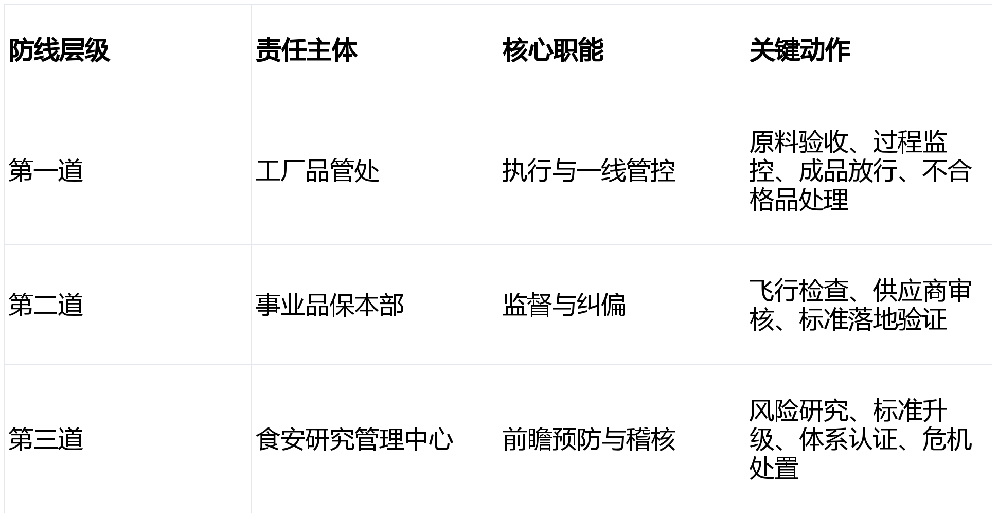 年度审核 + 驻场核查,成品查验:每批出货检 + 年度型式查验,高风险原料驻场监管,FSSC22000 等国际认证,持续以 “零” 推进系统优化,环节环节包罗供应商分级、过程 CCP 、数字化逃溯取尝试室检测;